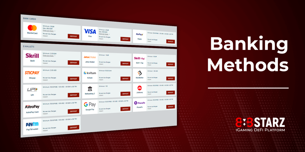 888 старз делает всё возможное, чтобы обеспечить комфорт своих клиентов, предоставляя разнообразные и удобные способы пополнения и вывода средств. Перед вами короткое руководство по этим вопросам.